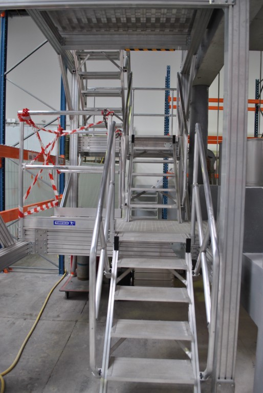 Escalier d'accès à l'extrémité d'un rack intérieur industriel dans les Bouches-du-Rhône (13).
