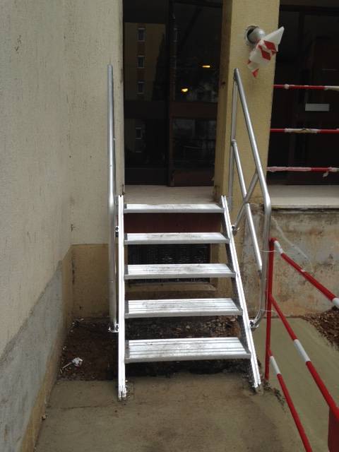 Escaliers d'accès aux bâtiments de la marque Tubesca Comabi installés à Montpellier, dans l'Hérault (34).Un Major du bâtiment rencontre une problématique d’accès sur sa construction!