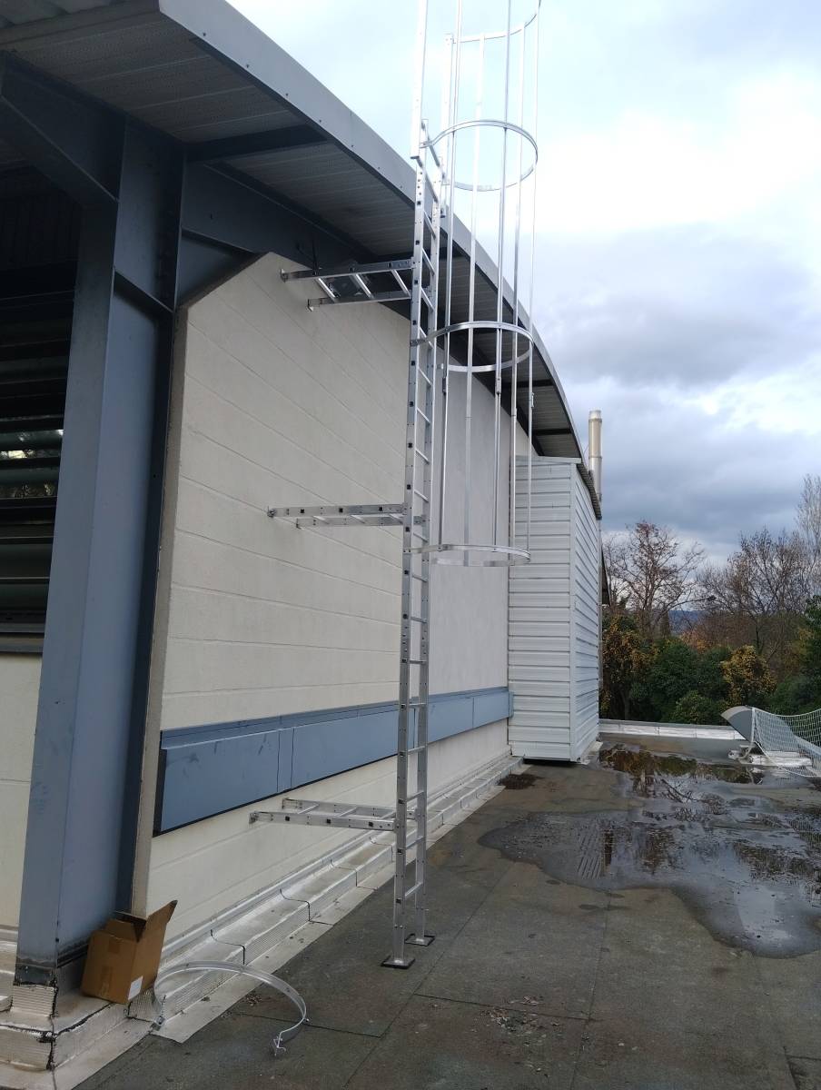 La Installation d'une échelle à crinoline sur un bâtiment à Allauch intègre plusieurs caractéristiques essentielles pour la sécurité bâtiment agroalimentaire :