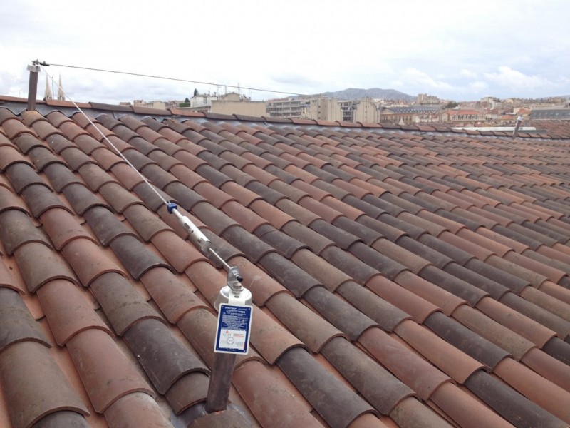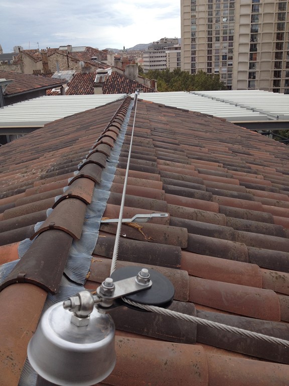INSTALLATION DE LIGNES DE VIE SUR LES TOITS DE MARSEILLE, DANS LES BOUCHES-DU-RHONE, MARSEILLE 13.