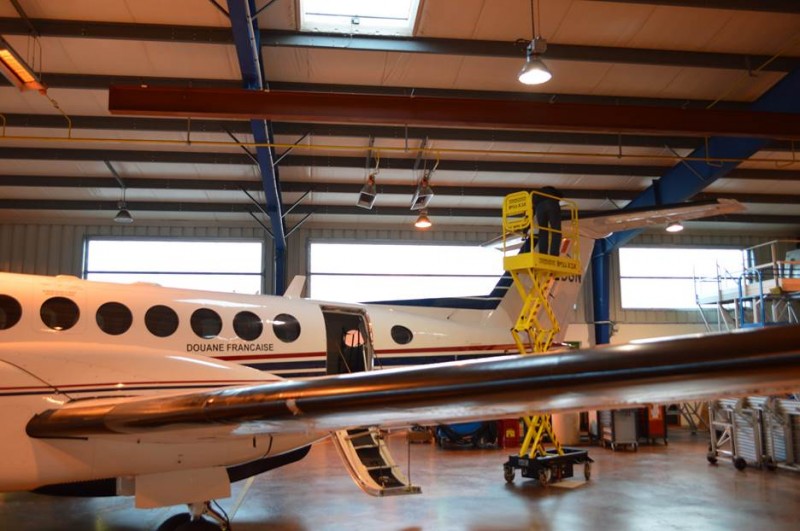 Nacelle pour la maintenance des avions des douanes françaises dans les Bouches-du-Rhône (13).