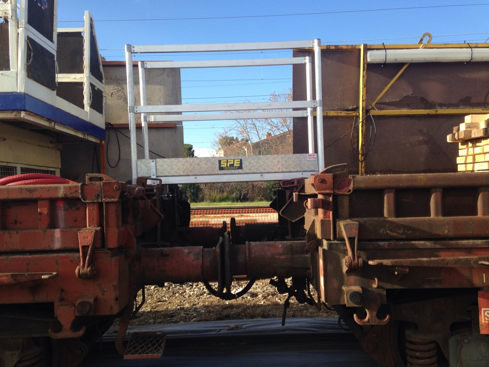 Les Passerelles de Franchissement des Wagons de Train, conçues par SPE et réalisées par notre usine partenaire Ultralu, représentent une solution innovante et sur mesure pour garantir la sécurité des travailleurs dans des environnements ferroviaires. Ces passerelles sont spécialement adaptées pour permettre aux personnels de franchir facilement et en toute sécurité les obstacles posés par les wagons de train, un défi souvent rencontré dans le secteur ferroviaire.